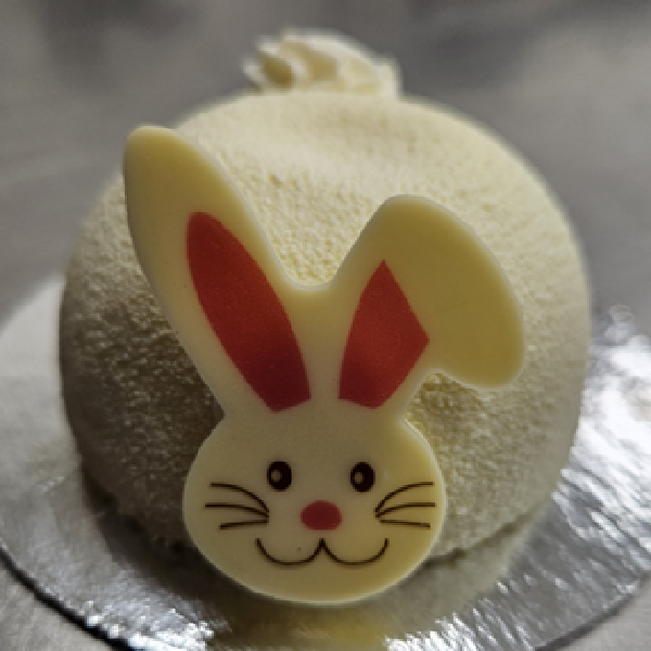 Coconut Mousse with a Passionfruit Mango Mousse center on a Coconut Almond Dacquoise base.